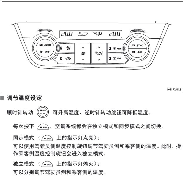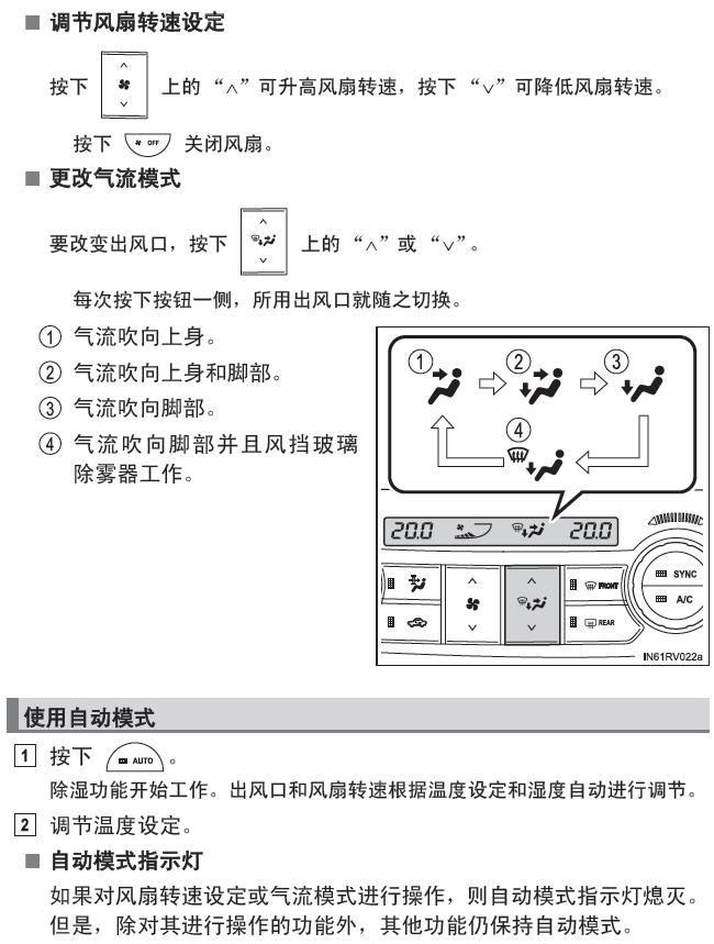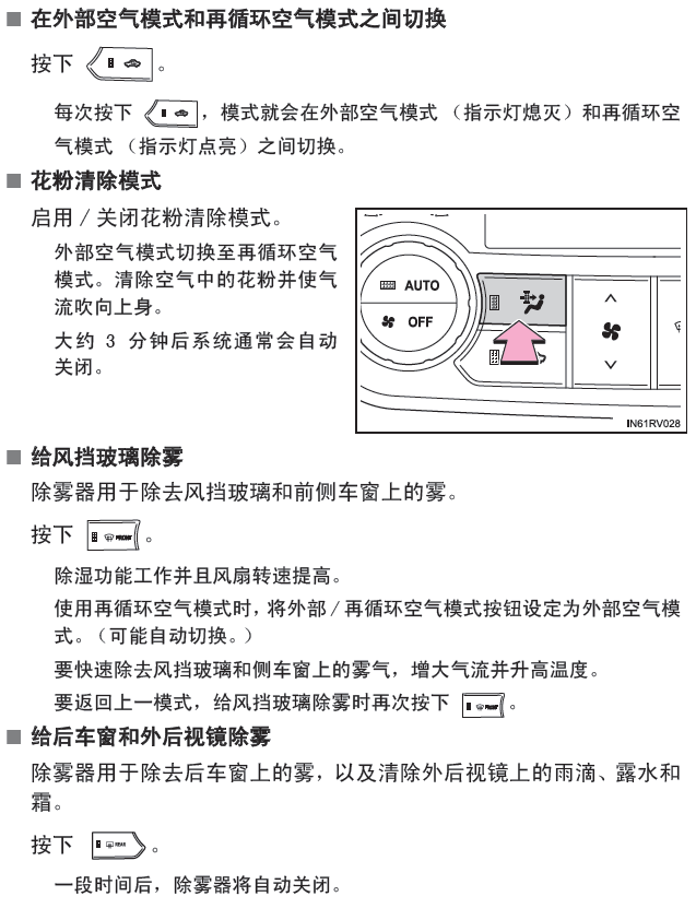 丰田rav4空调(自动空调)按键图解、使用说明