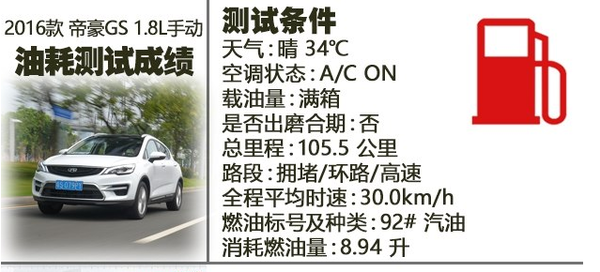 - 吉利帝豪GS作为一款紧凑级SUV,8.3L的百公里油耗算达到了优秀水准。共行驶了153.5公里的情况下,整个行程经历了大约50公里畅通高速,更多...[详细]