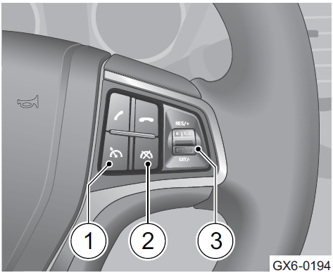 2.解除按键:按下此键,在不从记忆 中删除设定车速的情况下取消巡航控制。