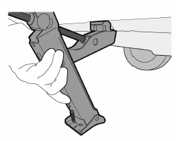 9. 千斤顶需放置在最接近需更换的轮胎附近,使千斤顶顶钩围绕垂直翼片,并插入翼片凹口。