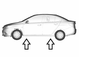8. 在箭头所示位置(翻边上凹口位置)插入千斤顶。