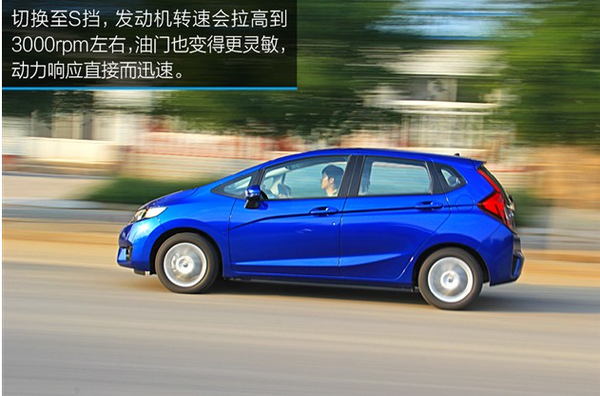 本田飞度CVT 0-100km/h加速时间10.08秒。CVT变速箱的表现自然是很平顺的,而加速给人感觉非常有持续性。正常行驶下发动机都能保持在一个较低的转速,动力输出线性而自然,这同样让驾驶变得轻松惬意。不过也是搭配CVT变速箱的原因,在需要急加速下变速箱的反应会有所迟疑。深踩油门,发动机和变速箱都不能做出迅速的回应,变速箱在短暂的延迟后,才会不紧不慢的将发动机转速拉高到3000rpm左右,而车辆也同样不会做出太剧烈的反应。可以这么说,急加速下深踩油门和缓踩油门的区别并没有多大,车辆总是一副不紧不慢的样子。而驾驶者也无法从中感受到什么乐趣和刺激感。
