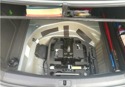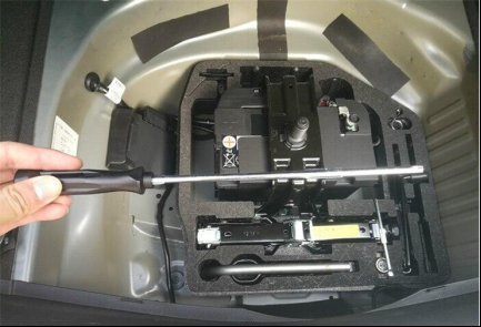 这个角度其实是滤芯正面,一会打开汽车的进气口就知道了,发动机进气罩,一共有6个梅花螺丝,需要的螺丝刀在后备箱下面