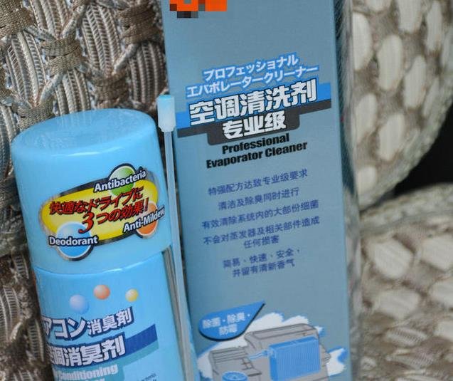 1、先准备专用的清洗工具,如下图,右边这罐用来清理空调外循环系统,左边这罐清理内循环以及车厢内部。