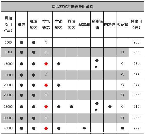 瑞风s3六次保养费用,瑞风s3第六次保养项目