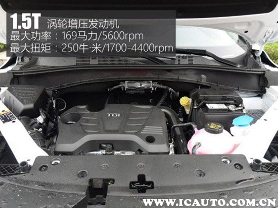 上汽为荣威RX5配备了旗下1.5T和2.0T两款发动机,两款动力均采用铝合金缸体、燃油缸内直喷技术、进排气可变正时系统等主流发动机技术。2.0TGI涡轮增压发动机,最大功率162千瓦/5000-5300rpm,最大扭矩350牛·米/2500-4000rpm。1.5T发动机拥有169马力和250牛·米的峰值扭矩。