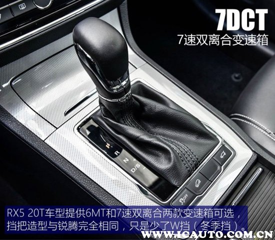 荣威RX5自动档车型都是双离合器变速箱。1.5T的主力车型自动挡配备的是7速干式双离合变速器,是上汽与通用共同研发的,由于干式双离合的结构特点造成其离合摩擦片磨损会比较快,低速1、2、3档会比较顿挫等通病,但有这些缺点为什么车企们还前赴后继的要上干式双离合呢?最直接的原因是成本要比传统自动档AT低的多!不过经过上汽的精心调校,这款7速干式双离合还是不错的。