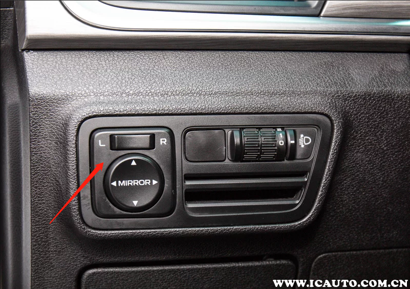 2、将后视镜选择开关拨动到 L( 左侧 ) 或 R( 右侧 ) 以选择需要调整的后视镜。