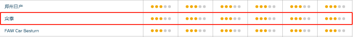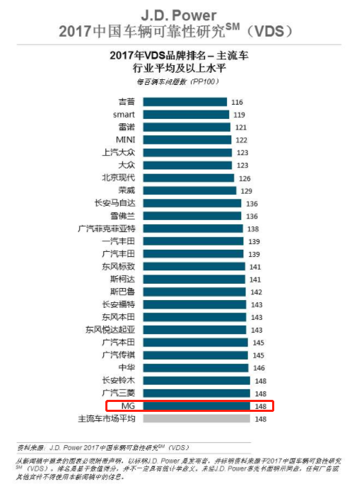 从图中我们看到名爵是刚好达到主流车市场平均水平,很遗憾的是,长安和众泰都没能达到平均水平。