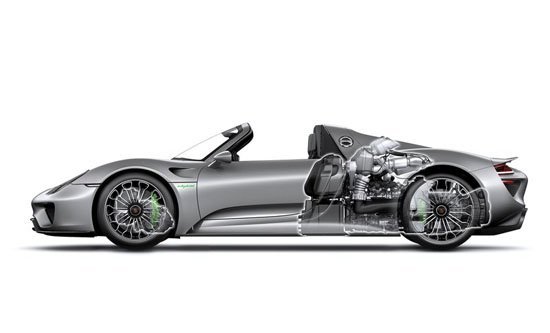 此外,为了追求极致的轻量化及保持车身的整体刚性,保时捷918除了车舱结构之外,大量使用了轻量化材料,包括车身质量的轻量化,碳纤维单体壳车身、复合材料车身覆盖件、铝镁合金和钛合金等,这样就能将整备质量控制在1700kg。
