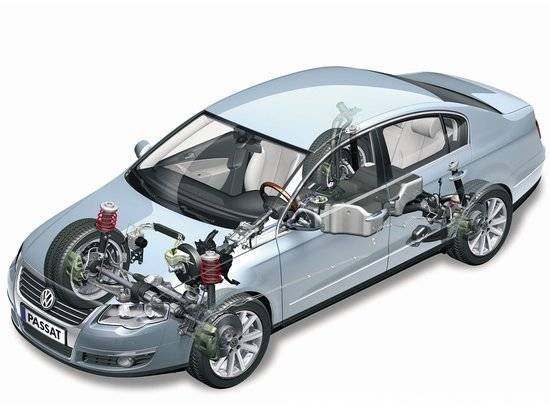 汽车底盘部件名称图解,轿车底盘完整结构图