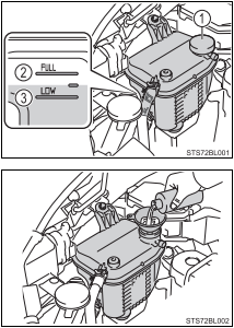 丰田chr加冷却液和加玻璃水是一样的,需要一个漏斗和足量的冷却液。冷却液系统容量为6.4L(公升)。如果储液罐中的冷却液液位在“FULL”和“LOW”刻度线之间,则冷却液液位正常。1为储液罐;2为“FULL”刻度线;3为“LOW”刻度线。紧急情况下,如果没有冷却液,则可用水代替。