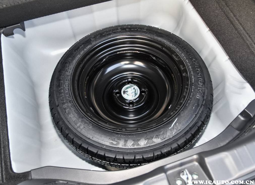 飞度的备胎在后备箱底层,掀开后备箱隔板就能看到。三角警示牌以及换胎工具都在里面。需要取出备胎时,将中间的固定螺杆逆时针拧松就可以拿出来。为了节约空间,新飞度使用的是半尺寸备胎,而老版的飞度则是使用全尺寸备胎。