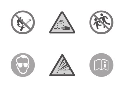该标识位于蓄电池上,用于提示您在对蓄电池进行安装、拆卸或检查前,应注意事项:应让儿童远离蓄电池;蓄电池在使用或充电过程中,可能产生可燃性气体,应远离高温热源和明火,否则可能造成燃烧或爆炸事故;蓄电池内含有腐蚀性较强的液体;操作时请佩戴护目镜等必要的防护措施。