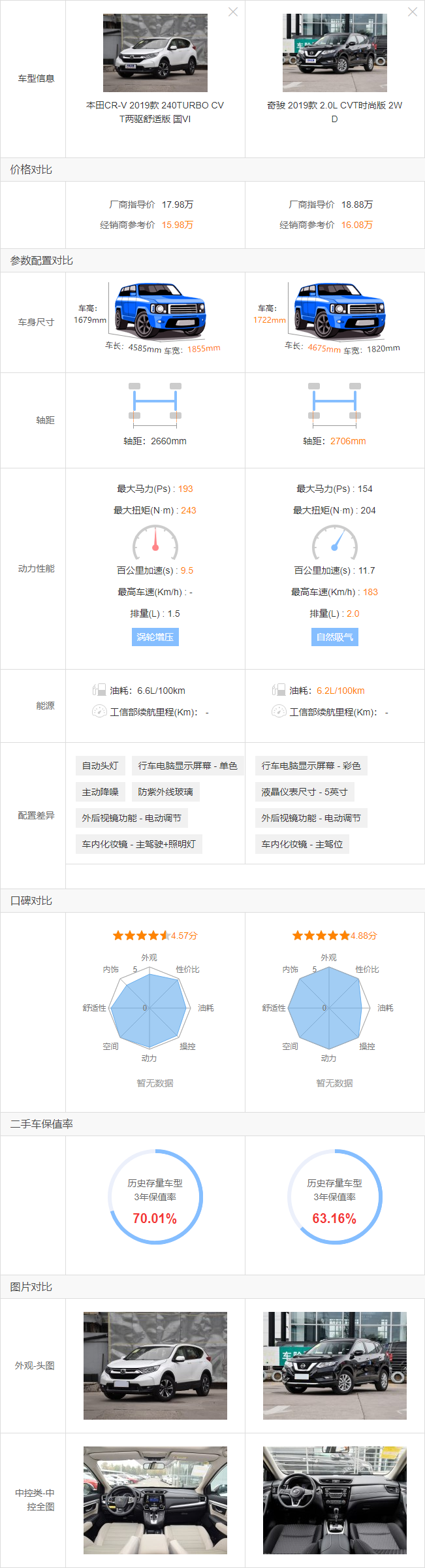 要知道加价买车就CR-V开的好头,可见CR-V当时是有多受欢迎。首先CR-V的品牌效应和保值率要高于奇骏,CR-V的颜值也要更高。然后就是动力,CR-V的1.5T配置有193马力,而且还有混动车型;而奇骏154马力的2.0排量自吸发动机和186马力的2.5L排量自吸发动机的动力都不及CR-V。