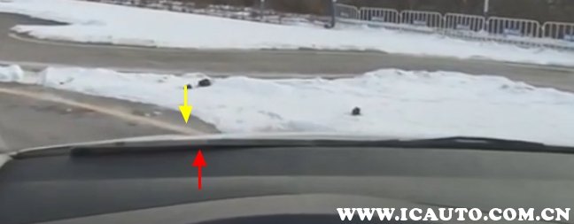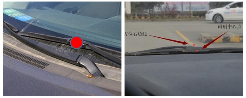进行侧方停车、左直角转弯、坡道定点停车都需要车身和道路边线保持30cm左右距离,当雨刮点凸起部分与右侧道路边线重合,此时车身和边线的距离即为30cm左右。