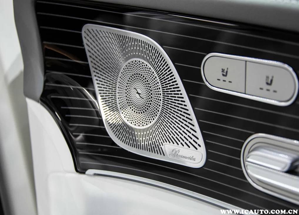 在门板上我们还可以看到柏林之声音响的标识,迈巴赫GLS一共拥有27个扬声器,实现3D立体环绕声,整套柏林之声功放系统可以达到1590W的输出功率。配合双层隔音玻璃和一系列降噪措施来提升车内音响的质感。