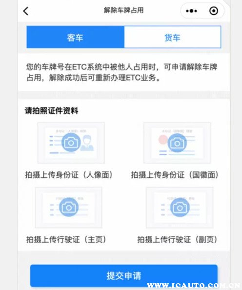 3、车主提交个人的身份证正反面和行驶证正副本的照片(客车需要上传身份证正反面、行驶证正副本,货车需要上传身份证正反面、行驶证正副本和车主与车头照片)