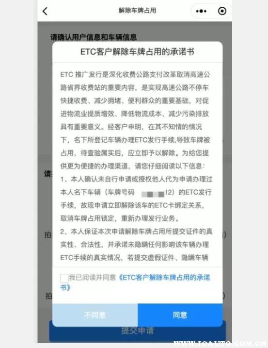 4、同意《ETC 客户解除车牌占用的承诺书》