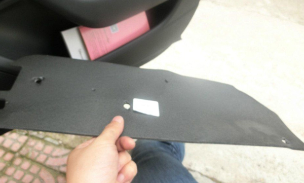 ①先小心沿着卡槽取下防水胶条,接着注意卡扣,并取下塑料盖板。