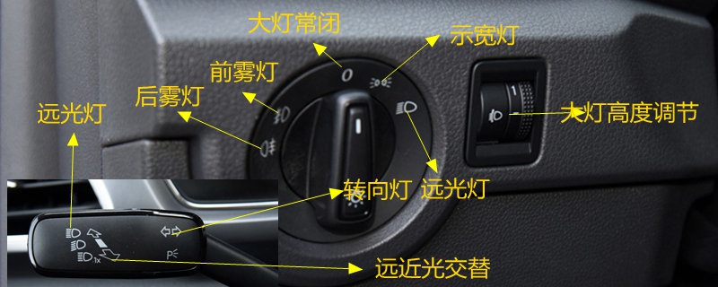- 大众宝来灯光使用方法图解说明 1、转向灯和驻车灯 车辆需要在点火状态下才能进行灯光操作: A、右转信号灯。 B、左转信号灯。 2、远光...[详细]
