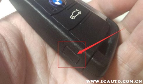 1、车主将汽车遥控钥匙侧面的按钮拿下,取出宝马的机械钥匙。