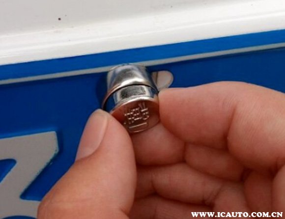 2、寄来的车牌中,会附带有一包螺丝,将螺丝旋进防盗帽的凹陷一侧;