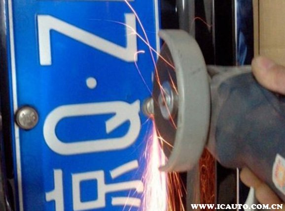 2、使用角磨机(注意工具使用有一定危险性,建议做好防护措施)将牌照上的螺丝帽用角磨机切出一道直口;