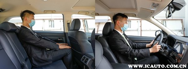 欧蓝德的坐姿是比较高的,这样视野更加良好。身高178cm左右的体验者,前排头部空间剩余一拳左右,后排头部空间也是差不多,仅剩四指,而腿部空间也有一拳多,算是比较宽敞。