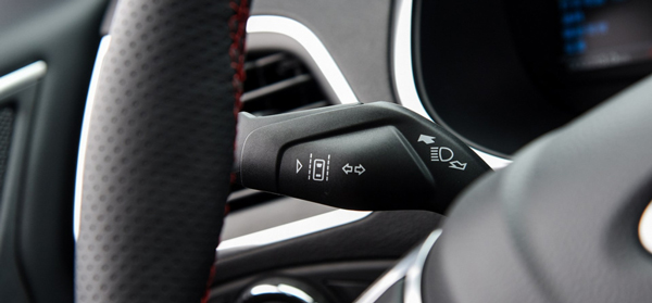 ④远光瞬时接通功能:往后拨动灯光操纵杆即可完成远光瞬时接通,此功能常用于警示及提醒别人。在仪表盘上,可以看到远光提示灯开启并闪烁。