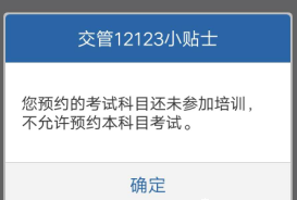 问题2:预约界面显示“您预约的考试还未参加培训不允许预约本次考试”怎么办?