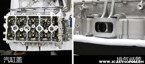 排气一体式气缸盖由于排气歧管集成在汽缸盖上,冷却水能够降低排气温度,改善高速油耗。同时,如此设计还能够进一步为发动机总成进行轻量化以及缩小体积。