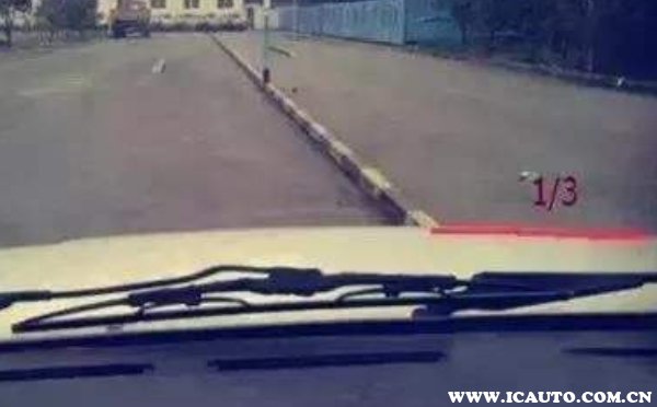 2、左侧雨刮器铆钉位置与道路右侧边线重合,车身同样距离道路边线30cm左右。