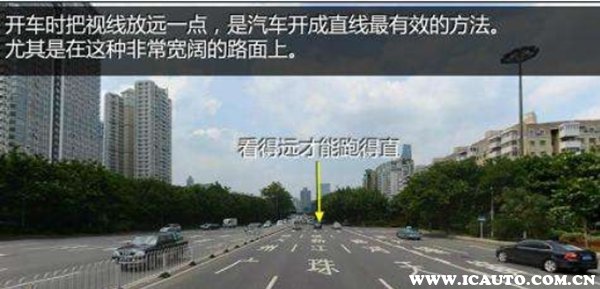 先来说说利用参照物跑直线方法,走右侧道路时,利用车前盖上某一点、眼睛、前两点射线投射到道路边缘线上,保持这个状态微调方向跑,车辆就不会偏离太多。或者将目光放远,看当前车道远方,感觉自己在道路中央行驶就可以了。