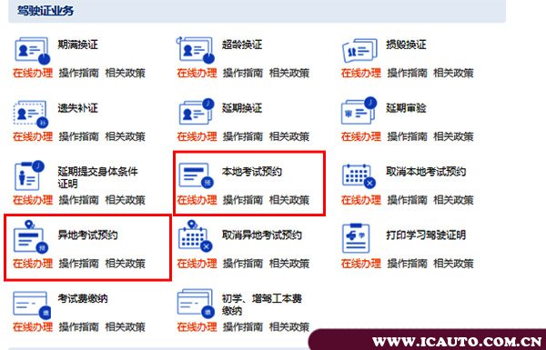 4、在驾驶证业务下选择“本地考试预约”或者“异地考试预约”,按照里面给出的提示预约即可。