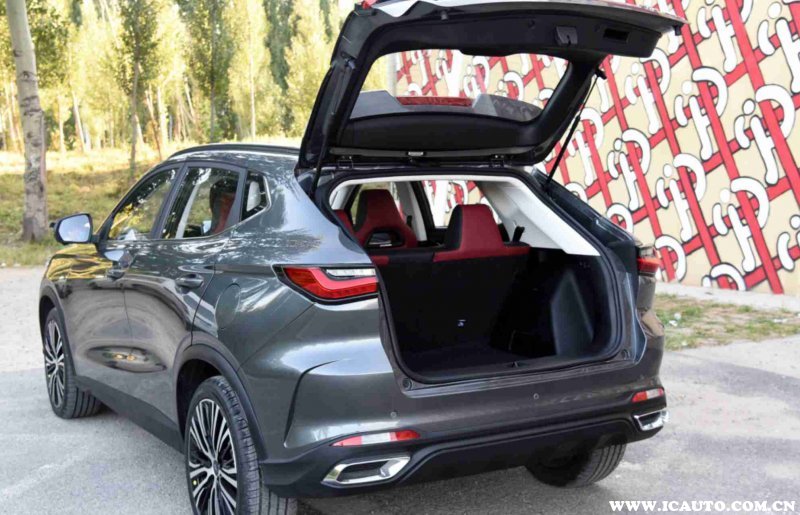 后排的乘坐空间其实是挤压了后备箱空间换来的,后备箱两侧的突出使得宽度只有990mm,深度只有830mm,再加上溜背的造型让后备箱上部空间非常有限,只剩下下部大概30L的空间。