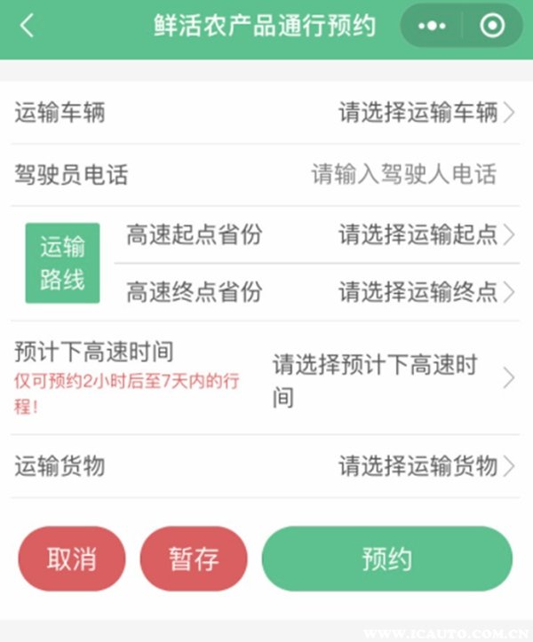 另外,若是需要通过高速绿色通道的车辆可以提前7天在微信小程序上预约,在上面填写车辆信息、高速起止点省份、以及预计下高速时间,并选择运输的货物,从而可以更快速地通过。