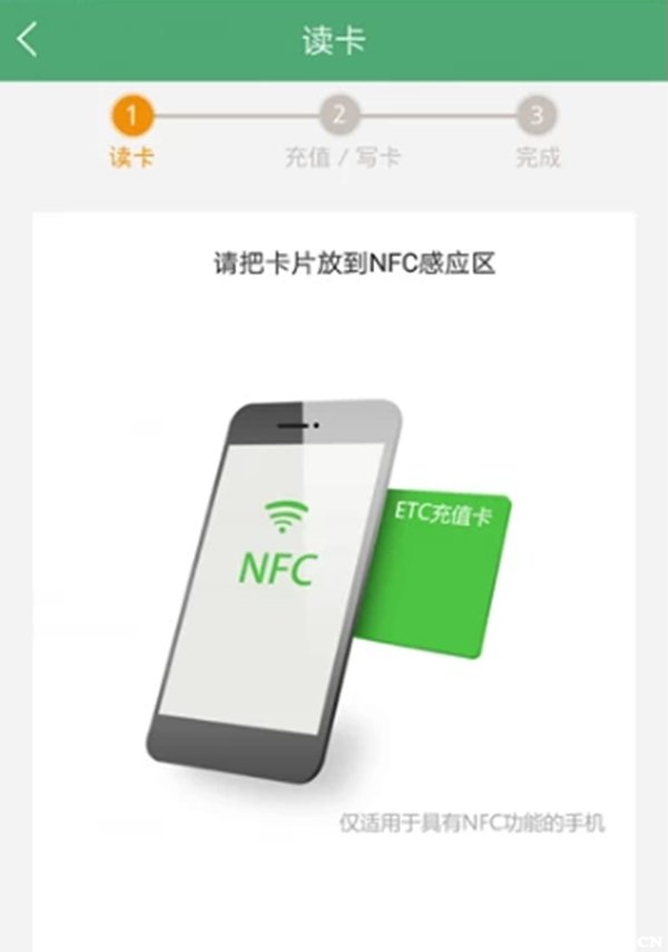 将手机的NFC功能打开后,把ETC卡放置于手机NFC感应区,然后选择充值金额,点击下方的“立即充值”,选择付款方式后进行充值即可。