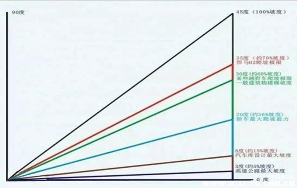这个坡度并不是我们通常理解的坡路的角度,而是坡路的高度和水平距离的比值,一般用百分比来表示,也有用小数来表示的。即坡度=(坡路的高度/水平距离)*100%。最大爬坡度30%即表示此坡度为每前进100米,坡度便升高30米。