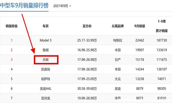 根据2021年9月份中型车销量排行榜可以看到,日产天籁销量碾压帕萨特和凯美瑞成功位列前三,由此可见天籁这款车是深受市场认可的,如果大家最近有购买家用车的想法,那么天籁绝对是值得考虑的车型。