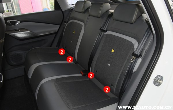 ②ISOFIX,欧洲标准接口,只有座椅的连接处含有2个,上部没有接口。