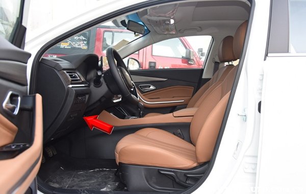 2019款北汽U7保险盒在中控台左侧,图中已经标注。拆开盖罩就能看到。