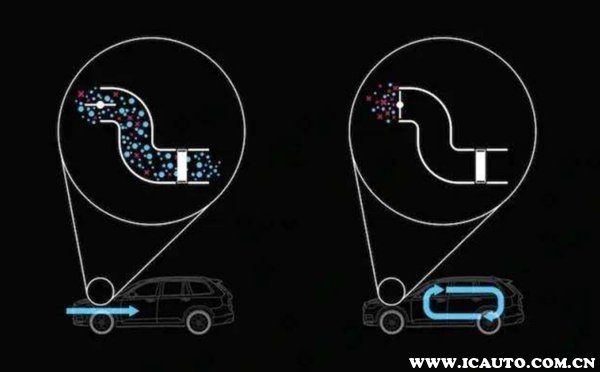内循环指车内的空气加热或制冷再送回车内,堵车时尾气多、尘土飞扬、雾霾等环境应当使用内循环。