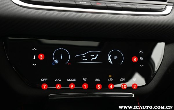 2021款奕炫中控空调按钮图解(图片编号对应下文序号)
