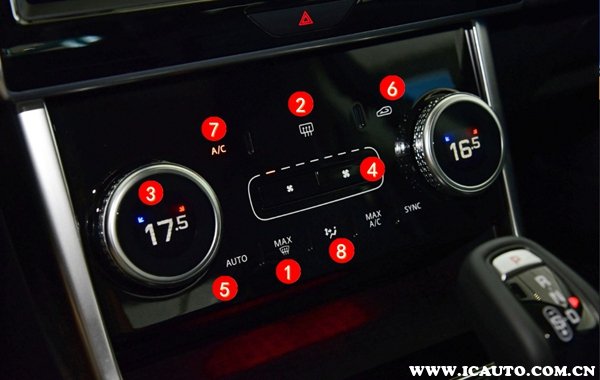 - 2021款捷豹XFL中控空调按钮图解(图片编号对应下文序号) 1、前挡风玻璃除雾 按下按钮之后指示灯点亮,压缩机工作制冷,并且风量会自动...[详细]