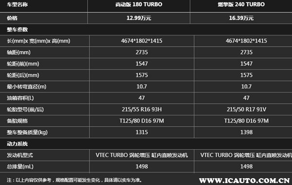 本田十一代思域在中国均搭载1.5T四缸涡轮增压发动机,分为高低功率两个版本,高功率版本峰值马力182匹,低功率版本峰值马力129匹,两个发动机版本均搭载代号一样的CVT变速系统。厂商指导价12.99万元-16.39万元,总共提供六款配置。