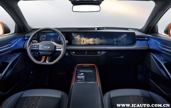 内饰方面,新款福特EVOS还是有一块足足1.1米长的大屏横在仪表台上,其中液晶仪表的尺寸达到了12.3英寸,多媒体屏幕的尺寸达到27英寸,所有功能按键都被集中在多媒体里面,在全新SYNC+2.0智行互联系统的加持下,整个车型的科技感被瞬间拉满。