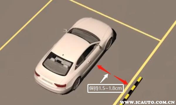 3、在倒车前,需要将两个前轮触地点都要行驶过控制线。