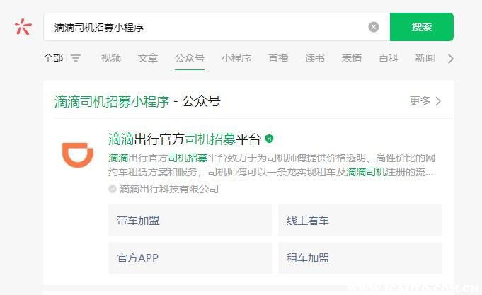 使用小程序注册成为滴滴司机的步骤:微信搜索”滴滴出行官方司机招募平台“,分为带车加盟和租车/购车加盟。如果是自己有车的,则可以选择前者,如果是没有车,需要用车的则可以选择后者,但是后者需要支付租金和押金。