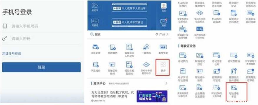 2、当进入到首页面之后,再去选择更多。然后找到业务中心,之后选择驾驶证业务栏,接下来再去选择电子版驾驶证,这样就能顺利进入到申请电子驾驶证的申请页面。